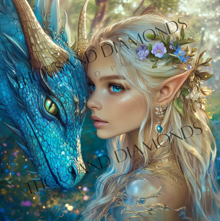Diamond Painting Bild - Drachenelfe Amira von Traumpixxel - 50x50cm 74 Farben/60x60 cm 94 Farben