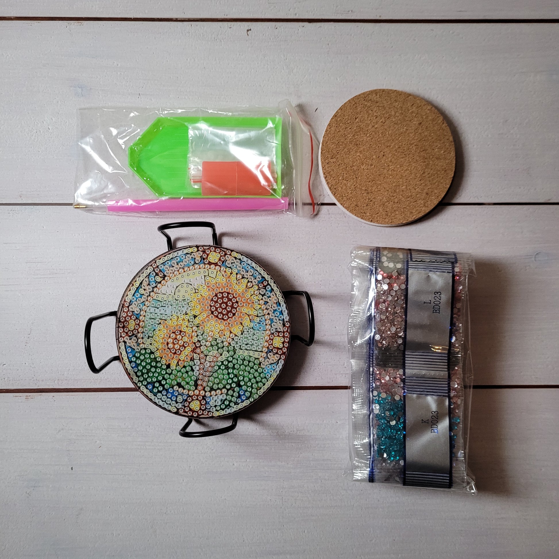 Untersetzer müssen mit den beiliegenden Steinchen selber beklebt werden.