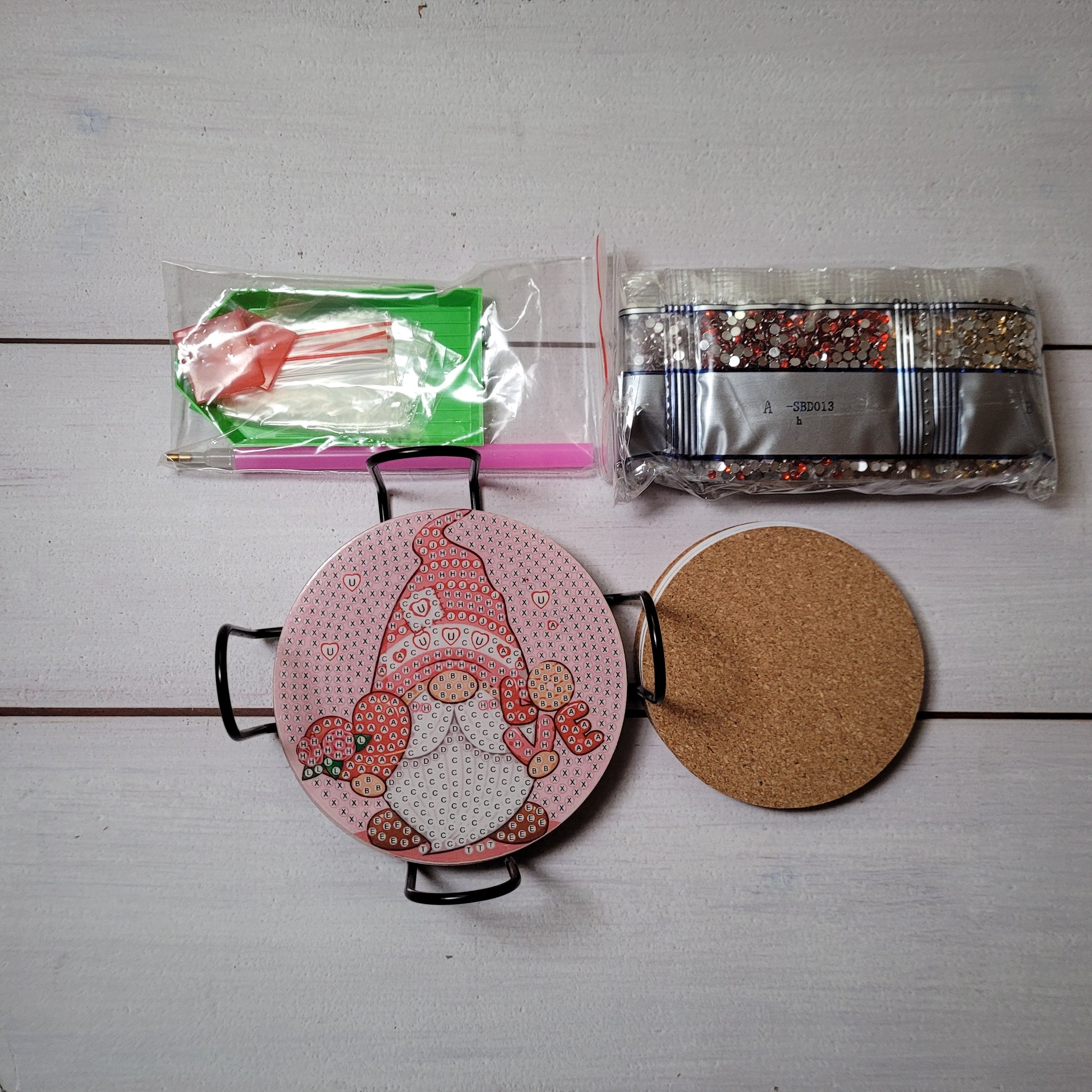 Untersetzer müssen mit den beiliegenden Steinchen selber beklebt werden.