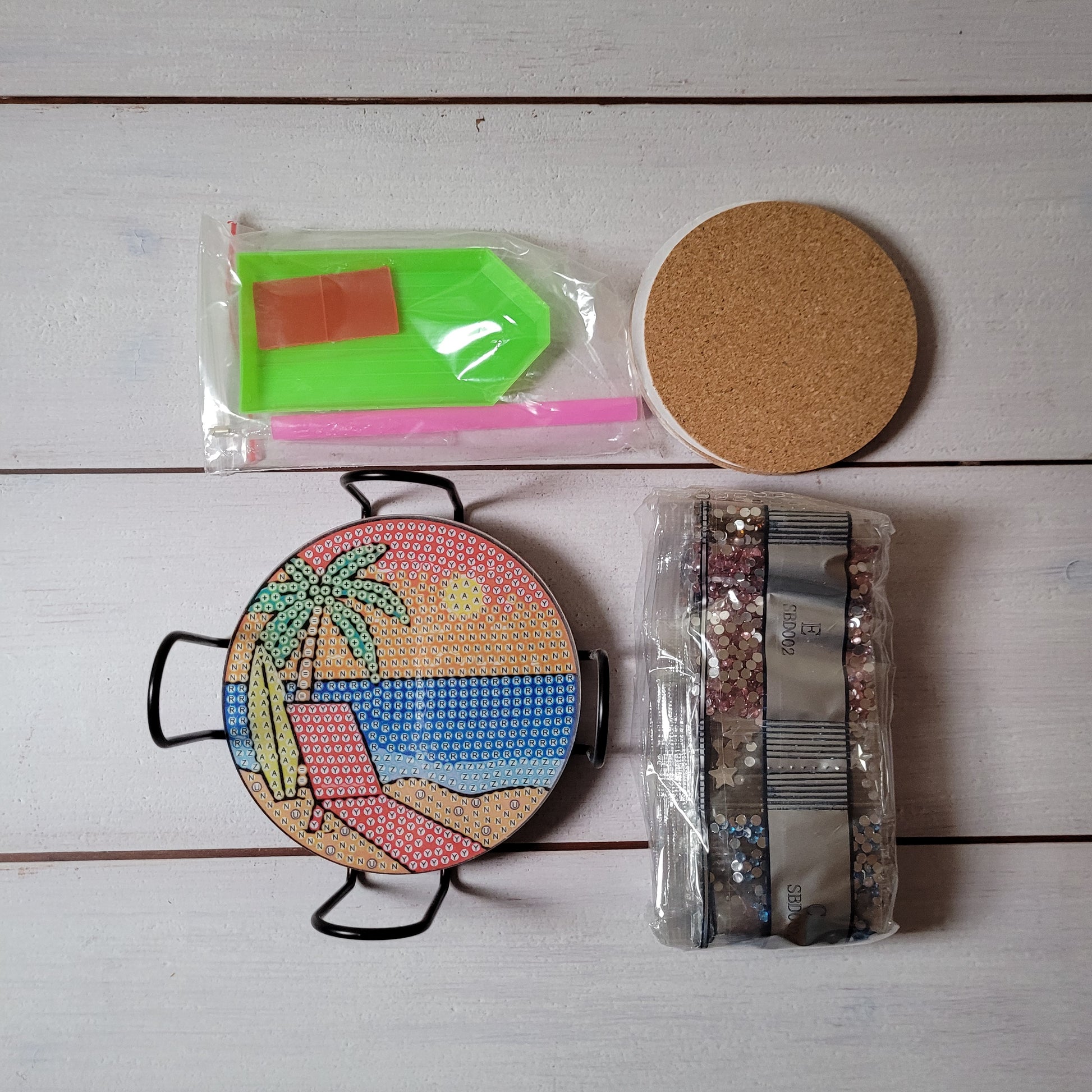 Untersetzer müssen mit den beiliegenden Steinchen selber beklebt werden.