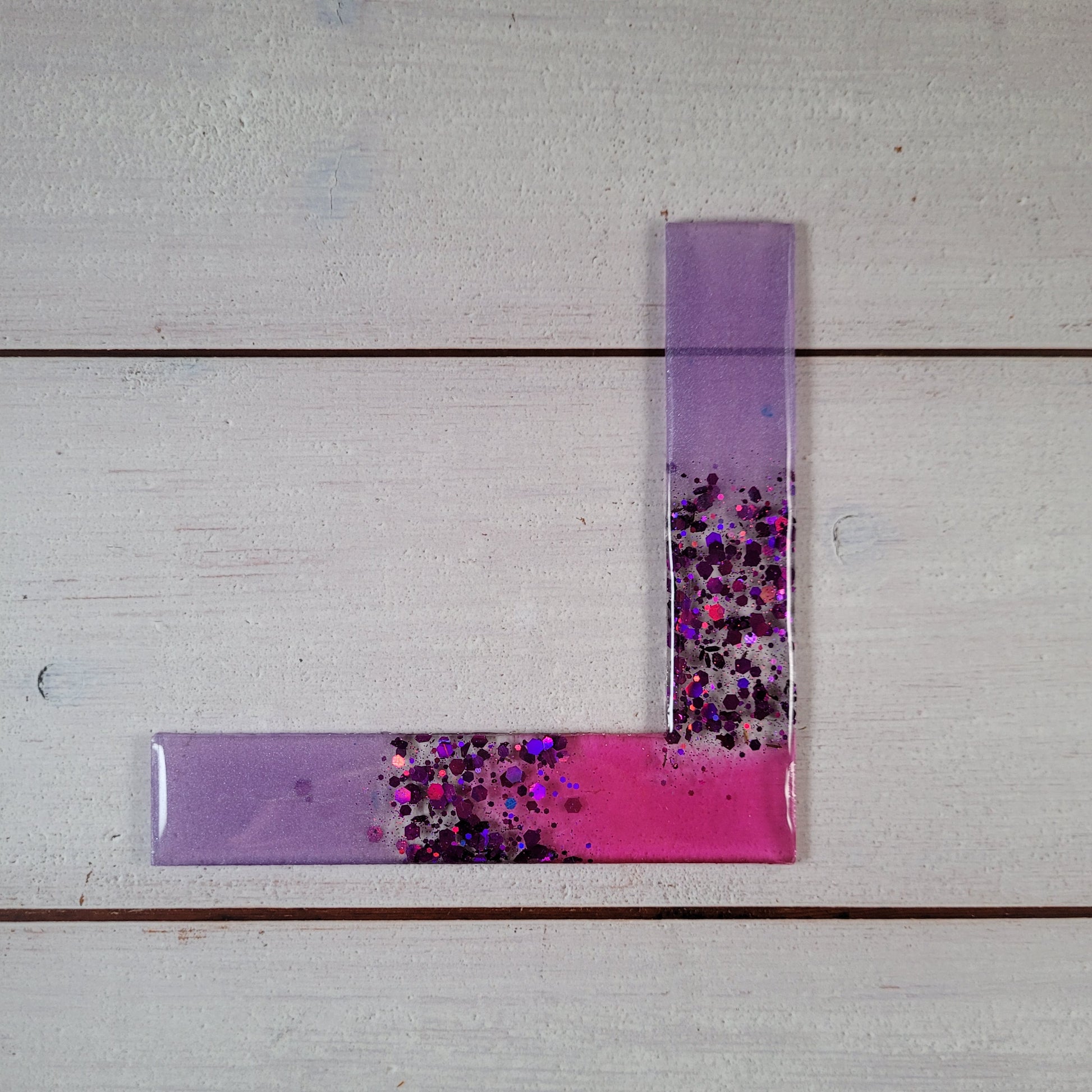 Ecklineal aus Epoxidharz - Pink/Lila mit Glitzer